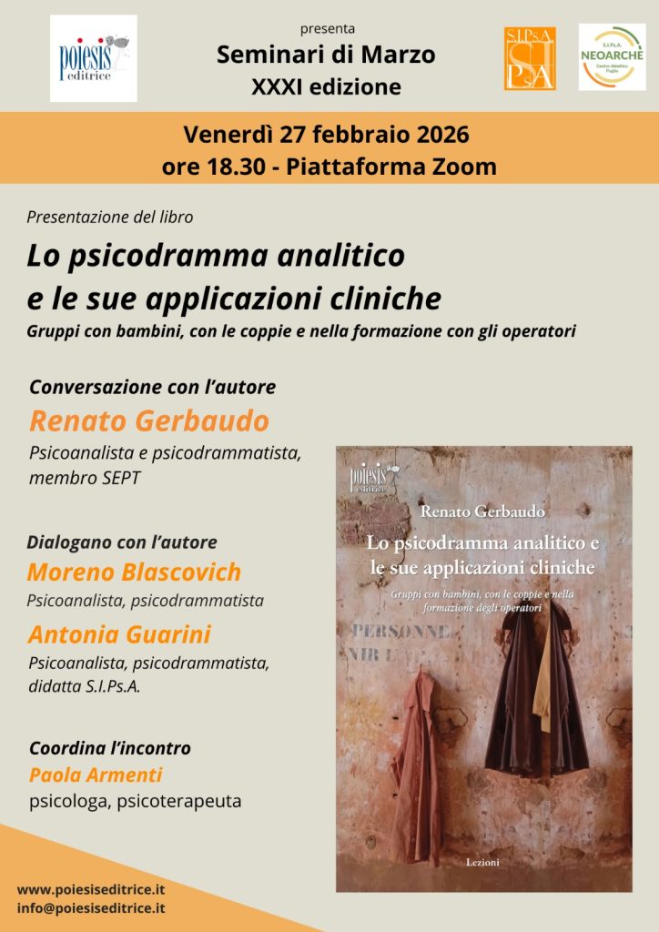 Dialogano con l’autore Moreno Blascovich (Psicoanalista, Psicodrammatista) e Antonia Guarini (Psicoanalista, Psicodrammatista, Didatta SIPsA).
